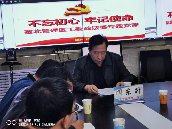 “不忘初心、牢记使命”推动政法工作建新功 2019年10月24日15时,区党工委委员、政法委书记闫东升在区群众工作中心,以“不忘初心、牢记使命”推动政法工作建新功为题,为分管部门党员干部讲“不忘初心、牢记使命”主题教育专题党课。 区政法委常务副书记冀海鑫主持会议并强调:全体党员干部要高度重视此次专题党课,深入学习领会闫书记授课内容,以党课内容进一步增强全体党员干部的理论素养和党性修养,确保以学习促工作,推动政法工作更好开展。 闫东升书记指出:开展“不忘初心、牢记使命”主题教育,把深入学习贯彻习近平新时代中国特色社会主义思想、锤炼忠诚干净担当的政治品格、团结带领全国各族人民为实现伟大梦想共同奋斗作为根本任务。这对于我们党不断进行自我革命,团结带领人民在新时代把坚持和发展中国特色社会主义这场伟大社会革命推向前进,对统筹推进“五位一体”总体布局、协调推进“四个全面”战略布局,实现“两个一百年”奋斗目标、实现中华民族伟大复兴的中国梦,具有十分重大的意义。 闫书记强调:贯彻落实“守初心、担使命,找差距、抓落实”的总要求,关键是要结合工作实际创造性开展工作,把学习教育、调查研究、检视问题、整改落实贯穿主题教育全过程。一分部署,九分落实。主题教育要想取得实效,必须真抓实干,稳扎稳打,把初心、使命变成党员干部锐意进取、开拓创新的精气神和埋头苦干、真抓实干的自觉行动。 闫书记要求:全体党员干部要通过此次主题教育开展,切实以赞新的风貌投身到干事创业中去,要通过学习实践,做到学思践悟、学以致用,以良好的精神状态抓好工作,不断推进作风建设,切实做到低调务实不张扬、埋头苦干为发展,切实为打造过硬素质政法队伍和塞北的发展作出新的更大贡献! 专题党课结束后,闫书记与政法委、榆树沟管理主要领导干部就综治信息化建设、法律服务站以及推动旧中学搬迁等工作进行了详细探讨。 ![]() ![]() |